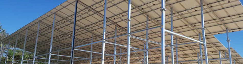 태양광발전시스템의 전기공사는 기초공사 후 태양광발전소 모듈시공과 동시에 진행합니다.